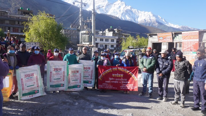 उपल्लो मुस्ताङमा एक्यापद्वारा वन्यजन्तु पीडितलाई राहत वितरण