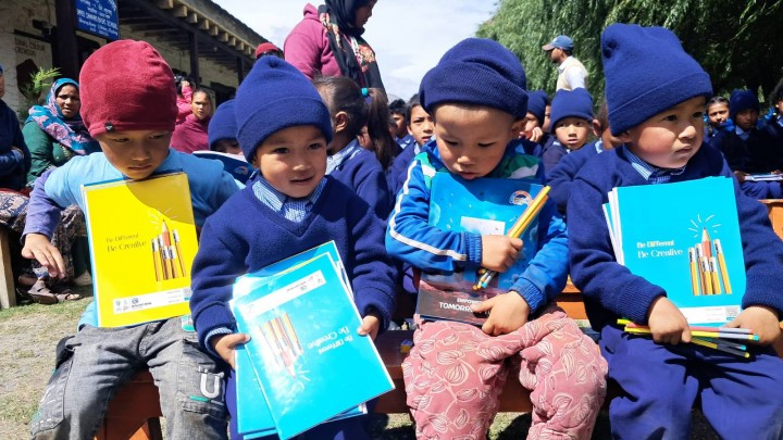 मुस्ताङको छैरो स्कुलमा प्रहरीद्वारा शैक्षिक सामग्री वितरण
