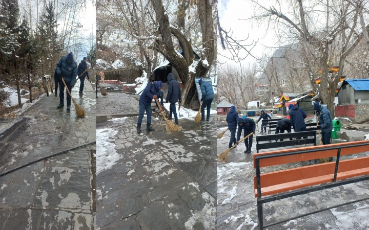 सुरक्षाकर्मीले पन्छ्याए मुक्तिनाथको हिउँ