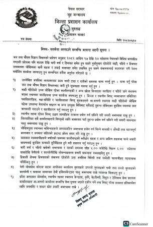 यस्तै , वर्षातका कारण हुनसक्ने विपद् प्रतिकार्यका लागि जिल्ला स्थित सबै कार्यालय प्रमुख,सुरक्षा निकाय,कर्मचारीहरु मानवीय सहयोगमा जुट्न आग्रह गरिएको छ । यसैगरी विपद् परेको अवस्थमा जिल्ला स्थित रेडक्रस,उद्योग वाणिज्य संघ,गैसस, आमा समुह लगायत निजी क्षेत्र र नागरिक समाजहरु संयुक्त रुपमा जुटेर विपद् कार्यमा सहयोग गर्न अनुरोध गरिएको सूचनामा उल्लेख गरिएको छ ।