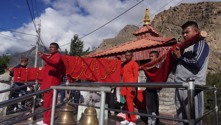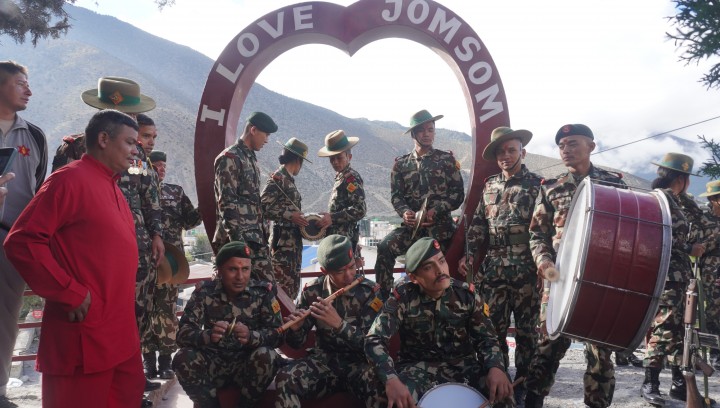 यसअघि यहाँका जोमसोम स्थित नेपाली सेनाको ईन्द्रबक्स गणबाट नेपाली सेनाको टोली नवरात्रको पहिलोदिन घटस्थापनामा राखिएका फूलपातीलाई सैनिक बाँजागाजासहित जोमसोम स्थित गणेश मन्दिरमा पु¥याएको थियो ।