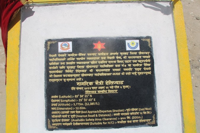 नेपाली सेनाको नारायण दल गण जोमसामका गणपति प्रमुख सेनानी लेखनाथ कटवालद्वारा लोमान्थाङ गाउँपालिकाका अध्यक्ष टसीनर्बु गुरुङ समक्ष नागरिक मैत्री हेलिप्याण्ड हस्तान्तरण भएको गाउँपालिकाले जनाएको छ ।