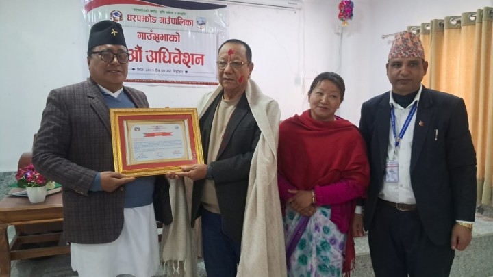 यसैगरी घरपझोङ गाउँपालिकाले शिक्षाक्षेत्रमा लामो समयसम्म योगदान पु¥याएका एक व्यक्तिलाई पनि सोही गाउँसभा अधिवेशनमा सम्मान गरेको छ । मुस्ताङको घरपझोङ—४ जोमसोम निवासी शिक्षाप्रेमी जयन्द्रलाल थकालीलाई घरपझोङ गाउँपालिकाले पन्ध्रौ गाउँसभा अधिवेशन समारोहमा सम्मान गरेको हो ।