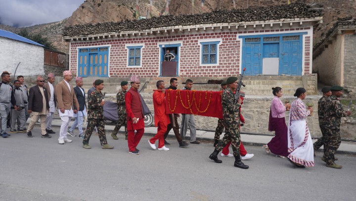 मुस्ताङमा सेना, सशस्त्र र प्रहरीले भित्र्याए फूलपाती डोली (तस्विर ःसहित)
