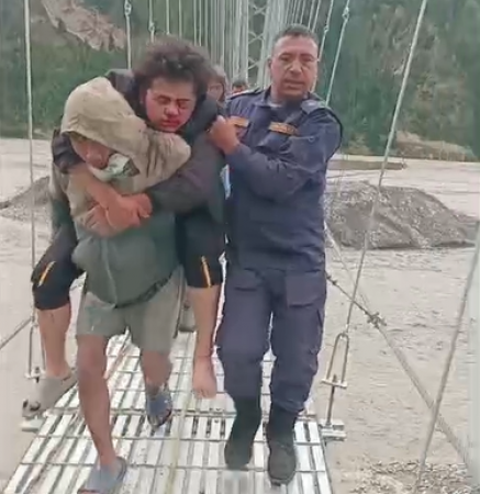 थासाङमा पुलबाट खसेका युवाको जिवितै उद्दार