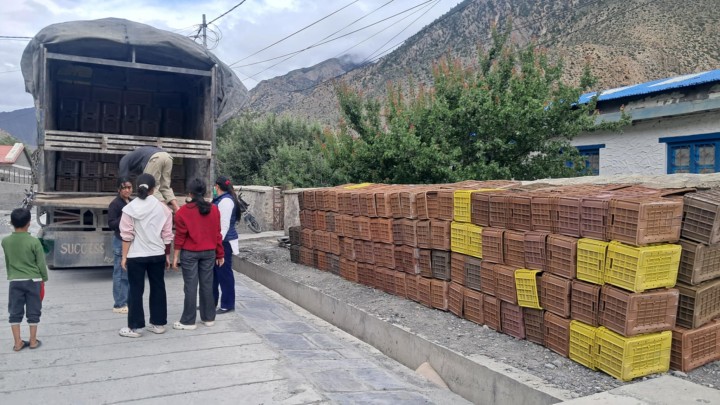 मुस्ताङका कृषकलाई स्याउ र आलु हार्भेस्ट गर्ने ‘‘बोरा र क्रेट’’ वितरण