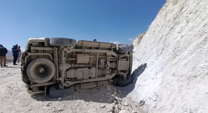 उपल्लो मुस्ताङ सडकमा पल्टियो स्कर्भियो , तीन यात्रु घाईते