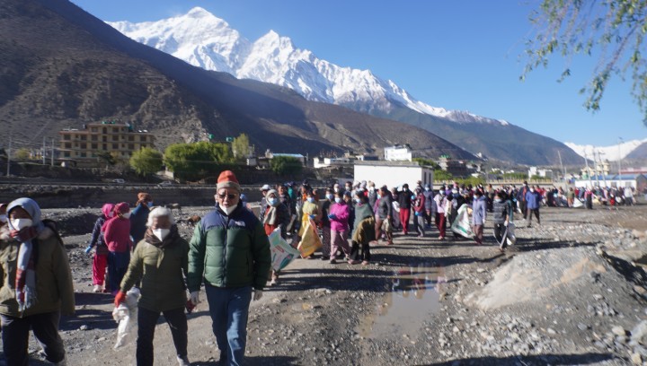 जोमसोम बजार क्षेत्र, सडक,पुलपुलेसा र कालिगण्डकी नदीक्षेत्रमा बृहत सरसफाई गरिएको हो । जोमसोम बजारको पक्की पुलदेखि नेपाली सेनाको ब्यारेक अगाडी सम्मको करिव २ किलोमिटर दुरीको क्षेत्रमा बृहत सरसफाई गरिएको मिलिजुली टोल विकास संस्थाका अध्यक्ष प्रमिला थकालीले जानकारी दिनुभयो । सरसफाई अभियानमा स्थानीय महिला संघसंस्था,स्थानीय नागरिक,गाउँसमाज,पर्यटन व्यवसायी,जनप्रतिनिधि,सरकारी कार्यालय र सुरक्षा निकाय लगायत ५०० बढीको सहभागिता रहेको अध्यक्ष थकालीले उल्लेख गर्नुभयो ।