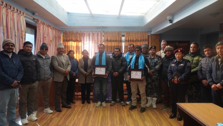 मुस्ताङका प्रजिअ अजिता शर्मा र मुस्ताङ भन्सार कार्यालयका निमित्त प्रमुख रमेश खड्का लगायतका सम्मानित व्यवसायी तथा कर्मचारीलाई सम्मानपत्र अर्पण गर्नुभएको थियो ।