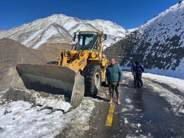 अवरुद्ध (कागबेनी— मुक्तिनाथ) सडकको हिउँ पन्छ्याईदै