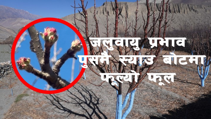 जलवायु प्रभाव : पुसमै स्याउ बोटमा फूल्यो फूल