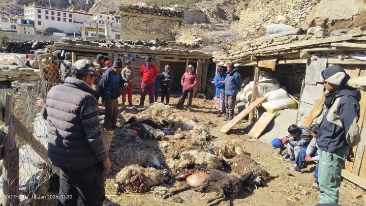 मुस्ताङको मार्फामा फेरी हिउँ चितुवाको आक्रमणबाट सन्तोष परियारका १७ भेडा क्षति